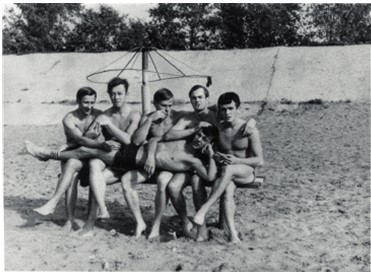 С. Кислов, В. Силуянов, А. Волошин, А. Петров, П. Чернявский, лежит В. Ситников