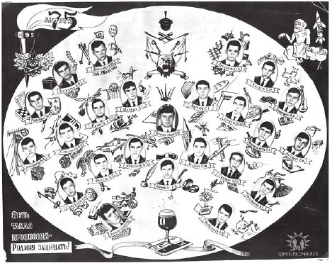 Традицией в нашем училище было изготовление виньеток с фотографиями выпускников, вокруг которых были иображены разные предметы, характеризующие личность и пристрастия каждого.
