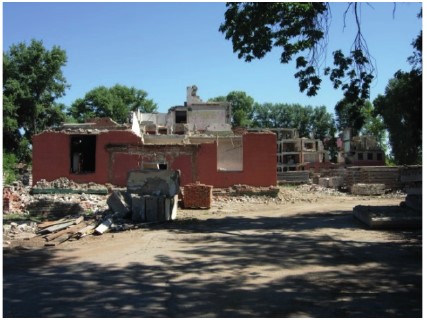 На фоне руин первого учебного корпуса