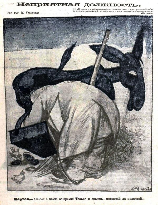 И подписью: «Мартов: – Хлопот с вами, эс-эрами! Только и знаешь – подметай да подметай…».