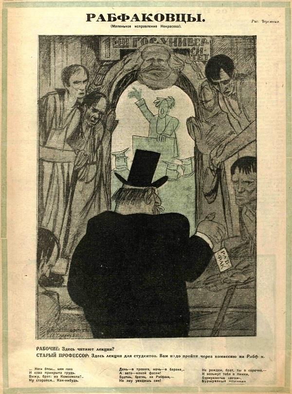 Карикатура М. Черемных «Рабфаковцы» 1922 года сопровождалась подписью: