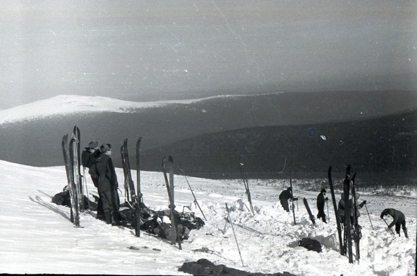 3. Под палаткой уложено 8 пар лыж вниз креплениями.
