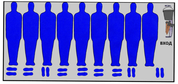 Рис. №17. Схема размещения в палатке туристов на ночлег. Ничего особенного. Масштаб постарался соблюсти, по возможности.