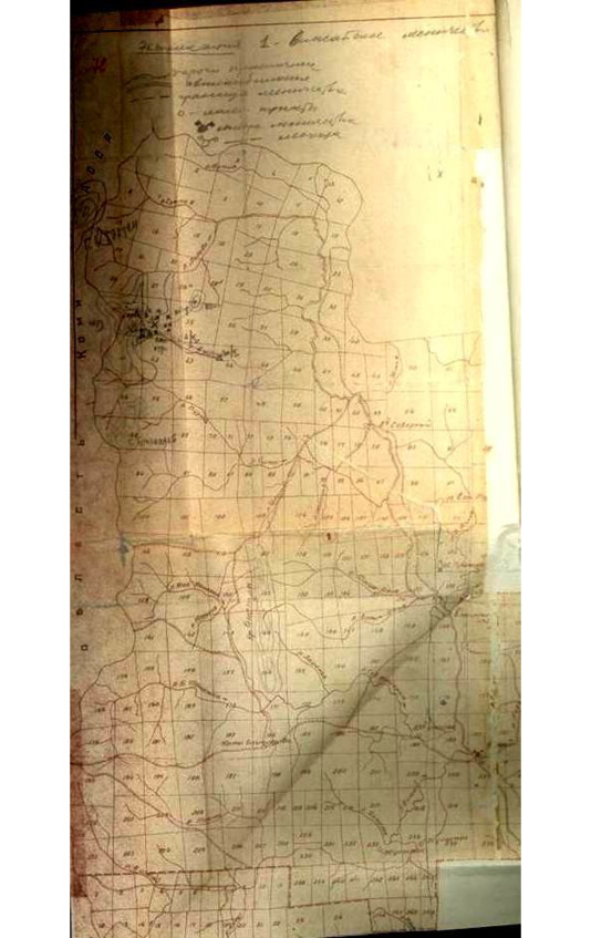 Ниже надпись, похоже: «контора лесничества», обозначена черным квадратом с двумя флажками. Такой знак имеется в правом нижнем углу карты. Ещё один похожий знак, только белый – «контора лесхоза» – на карте не нашёл.
