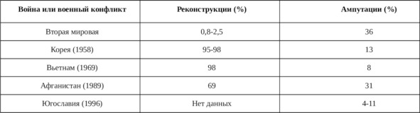 Соотношение реконструктивных операций на сосудах (сосудистый шов, пластика, шунтирование) и ампутаций в военных конфликтах