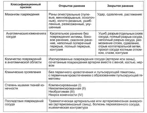 Клиника открытой и закрытой травмы сосудов базируется на двух ведущих клинических симптомах: