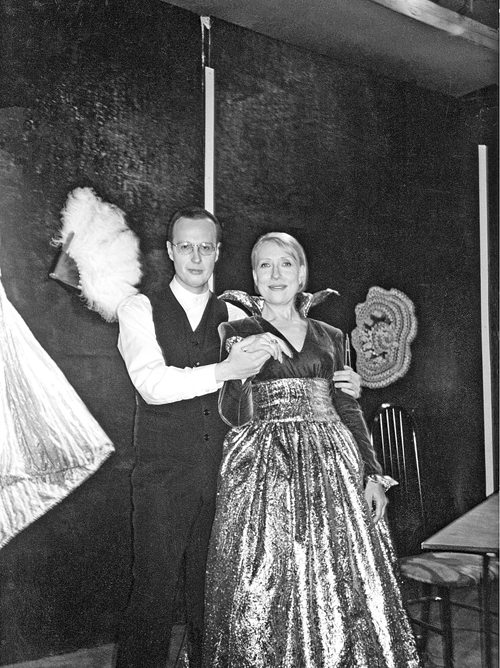 На одном из снимков – Вишневская и Ростропович в декорациях спектакля «За зеркалом». Галина Павловна в сценическом костюме, Мстислав Леопольдович в костюме-френче. Фотография сделана в день премьеры.
