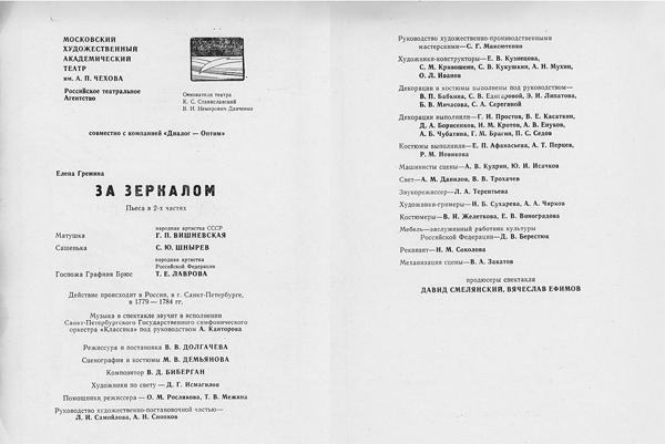 Программка спектакля «За зеркалом». МХАТ им. А.П. Чехова. 1994 год.
