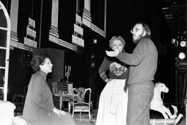 «За зеркалом». Репетиция с режиссером Вячеславом Долгачевым. МХАТ им. А.П. Чехова. 1994 год. Фото Игоря Александрова.