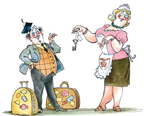 – Заходите, добро пожаловать! Вот ключ от вашего номера, – сказала Степанида и протянула ключ Самоделкину.
