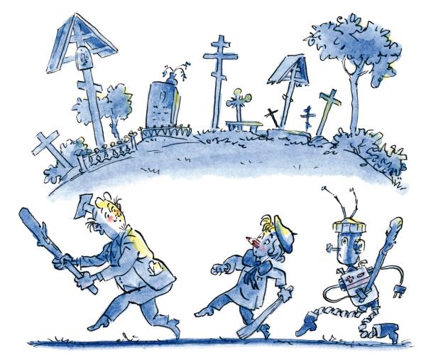 – Я не хочу ночью по кладбищу болтаться, – захныкал дворник Метёлкин. – Пойдём скорее в дом, а то страшно здесь бродить.