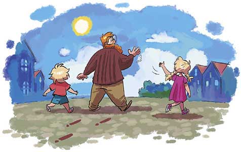 – Нам нужно перейти улицу! – указал Мартин на зелёный свет светофора. – Ой, смотри: Матильда! – обрадовался Мартин, увидев сестру, которая шла им навстречу. – Ты куда?