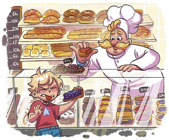 – Только посмотри: кексы, бисквиты, рогалики, – радовался Шоколадный дедушка, разглядывая сладкую витрину.