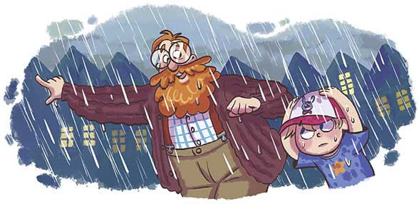 – Ой, а у нас зонтика нет, – опомнился Мартин. – Что же будем делать?