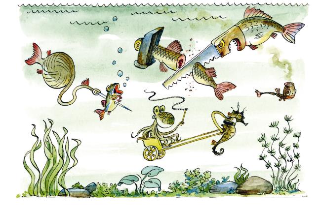– Ого, это же рыбы-трубки, – обрадовался профессор Пыхтелкин. – Они внешне похожи на курительные трубки, а когда плывут, то ещё и выпускают пузырики. И кажется, что по морю плывут настоящие дымящие трубки.