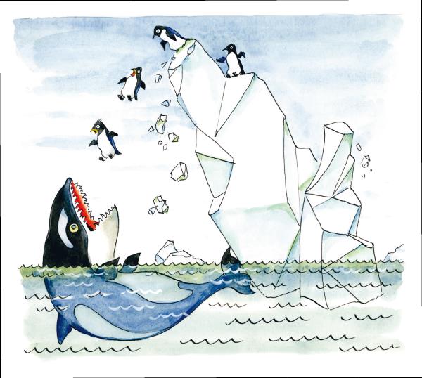 – В море действительно очень много опасных обитателей, – намазывая масло на хлеб, произнёс профессор Пыхтелкин. – Например, белая акула, длина которой достигает семи метров, может целиком проглотить человека, даже не прожевав его хорошенечко. И косатки тоже очень опасны. Когда они охотятся на пингвинов, то раскачивают огромные глыбы льда и сбрасывают с них птиц в море, а в воде нападают на них.