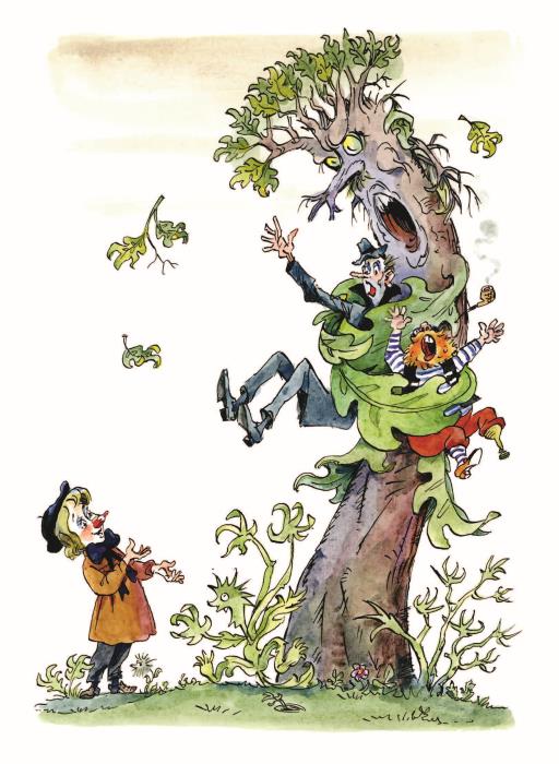 – Вы что, не видите?! Меня дерево схватило и не отпускает! – надрывался пират Буль-Буль. – Освободите меня! – ревел разбойник. – Оно держит меня сзади за куртку!