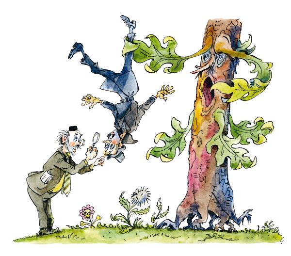 – Это липкое дерево, – засмеялся профессор Пыхтелкин. – Никто тебя не держит. Ты просто-напросто прилип к дереву, когда прислонился к нему спиной. Придётся тебе вылезать из куртки. Липкое дерево ни за что её не отпустит.