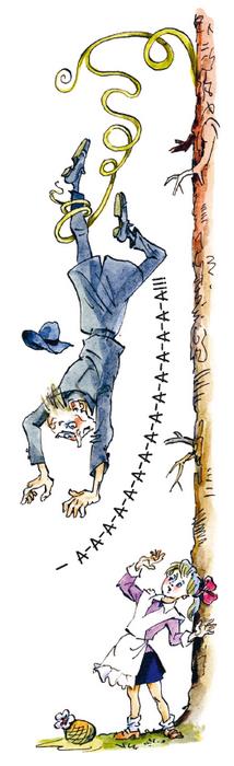 Больше всего на свете разбойник боялся именно змей. Поэтому он изо всех сил оттолкнулся от дерева ногами, чтобы, словно обезьяна, перепрыгнуть с одной ветки на другую и спастись от опасного врага. Но прыжок не получился. Не долетев до соседней ветки всего несколько сантиметров, шпион почувствовал, что его кто-то дёрнул за ноги, и разбойник полетел с вершины дерева на землю.