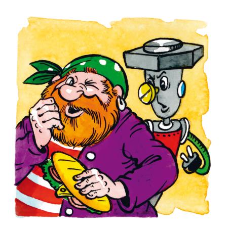 – Пора набить трюм и промочить горло! – заявил пират Буль-Буль, доставая из корзины еду. На пиратском языке «набить трюм и промочить горло» означало: пора подкрепиться.
