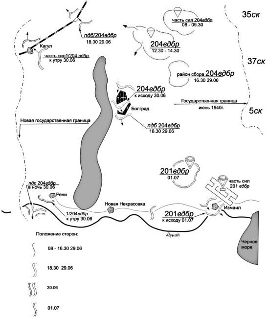 Рано утром 29 июня командир 204‑й воздушно-десантной бригады получил приказ на десантирование и через несколько часов подразделения бригады уже проводили выброску в 12 км севернее Болграда. К исходу дня город полностью контролировался десантниками. На следующий день 1‑й батальон бригады взял под контроль город Кагул и порт на Дунае Рени, что приостановило грабеж деморализованными румынскими военными местного населения.