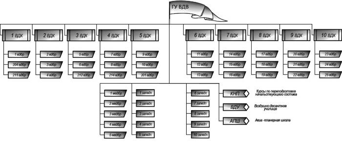 Общая штатная численность Воздушно-десантных войск была установлена в 149 700 человек. При этом каждый воздушно-десантный корпус должен был насчитывать по 10 328 человек, а отдельная маневренная воздушно-десантная бригада – 3824 человека.
