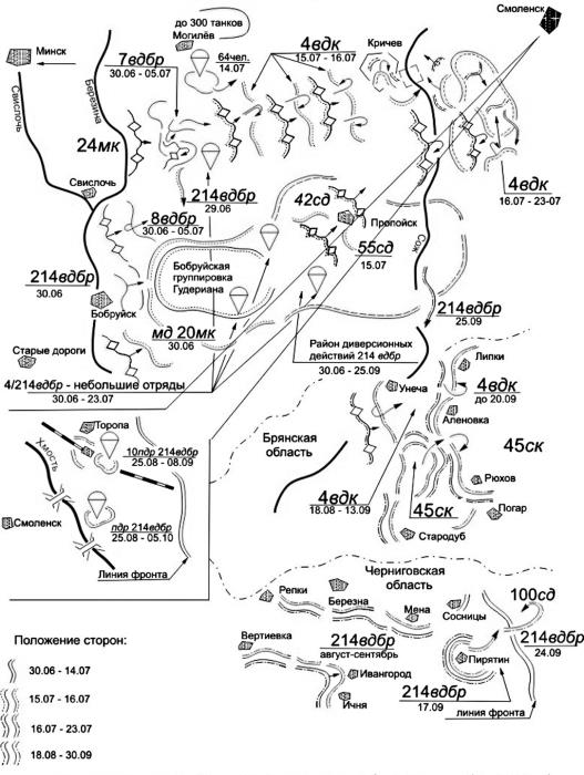 В частности, 22 августа 1941 г. в тыл вражеских войск шестью самолетами ТБ‑3 была выброшена парашютно-десантная рота для уничтожения двух мостов на реке Хмость. После успешного выполнения ближайшей задачи рота, действуя на коммуникациях противника, совершала налеты на колонны вражеской пехоты, уничтожала обозы, нарушала линии связи и через 45 суток вышла в расположение своих войск.