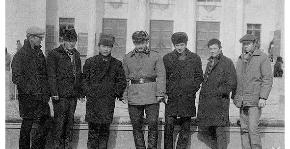Дембель А. Евсеева (в центре); Рядом – Г. Цой и В. Чаков. 1969
