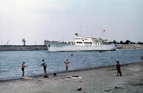 Теплоход «Худат» в акватории Жилгородка. 70-е годы