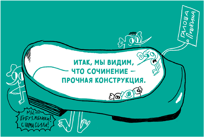 По скромному мнению автора, не физика, не алгебра и не геометрия подбрасывают детям самые сложные задачи, а именно литература. Потому что у точных наук есть алгоритмы и формулы. А как быть с литературой? Ведь это искусство, а искусство свободно. К тому же подвижно: оно опирается на прошлое и стремится в будущее. Недостаточно просто прочесть книгу, и уж точно не стоит полагаться на краткие содержания из Сети. Нужно знать теорию, историю, биографию автора, уметь сопоставить факты и сделать выводы. Тут так легко растечься мыслью и заплыть за буйки. Школа же требует, чтобы ученики «танцевали на узкой табуреточке»: придерживались формальностей, что вовсе убивает интерес к классике. «Зачем писать, если мое настоящее мнение никого не интересует?» – резонный вопрос, который возникает у школьника, после чего сочинение превращается в скомканную отписку.