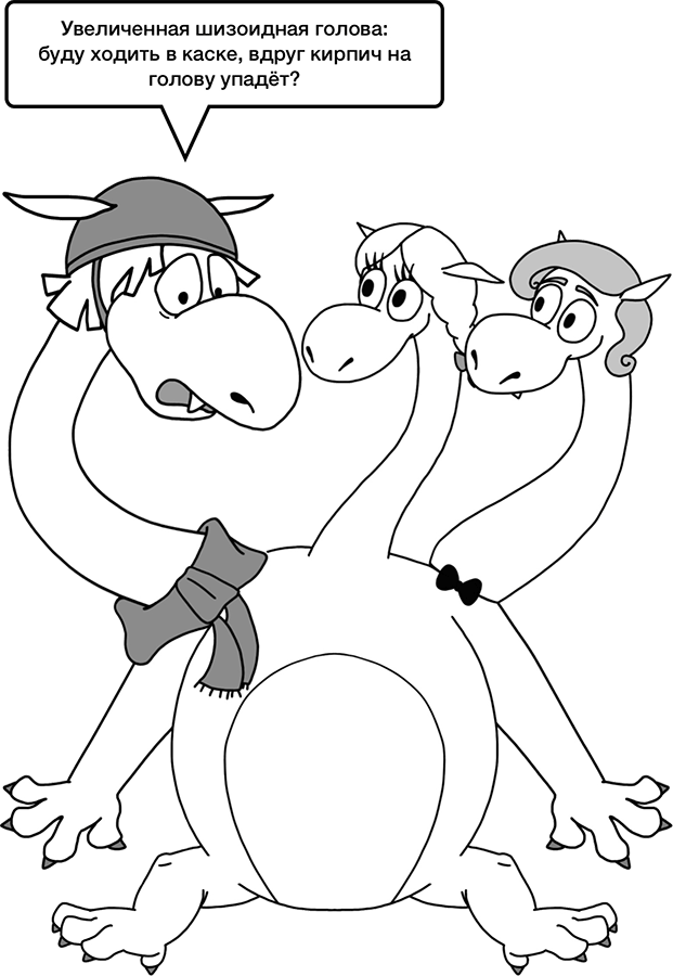 Если шизоидная голова, отвечающая за страхи, самая большая из трёх, то человек постоянно всего боится, тревожится, много фобий, панических атак. Такой человек каждый свой прожитый день боится умереть.