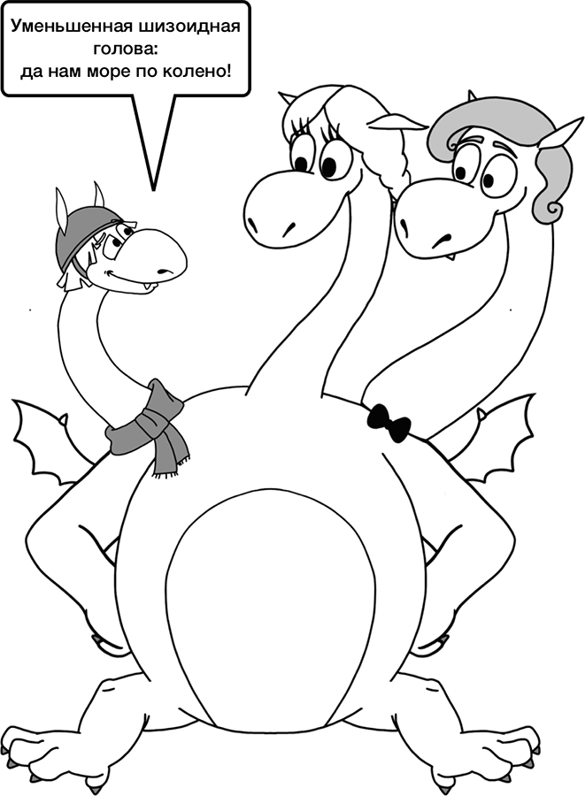 Одна голова этого дракона отвечает за все наши страхи и безопасность. Её называют шизоидной головой. Не в смысле человек болен шизофренией, а совсем в другом, в позитивном смысле. Наша шизоидная голова включается, например, когда мы идём через дорогу, когда чего-нибудь боимся, например, что не будет клиентов на дизайн-проект.