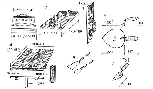 Рис. 4. Инструменты для выполнения штукатурных работ: