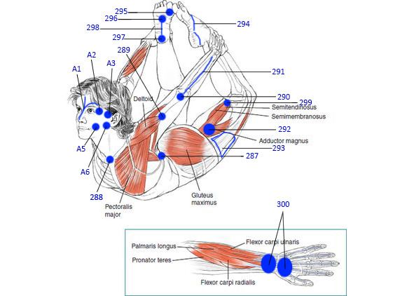 Лівою рукою нащупати ущільнення, накласти пристрій та потримати до зняття напруги в місці де є проблема. Таким чином розірване електричне поле по причині розтягнення, та інших пошкоджень буде відновлене. Нейрони мізків перестануть атакувати проблемний відрізок тіла. Таким чином, тіло швидко відновить всі процеси і зникне біль та хвороба, яка виникла по цій причині.
