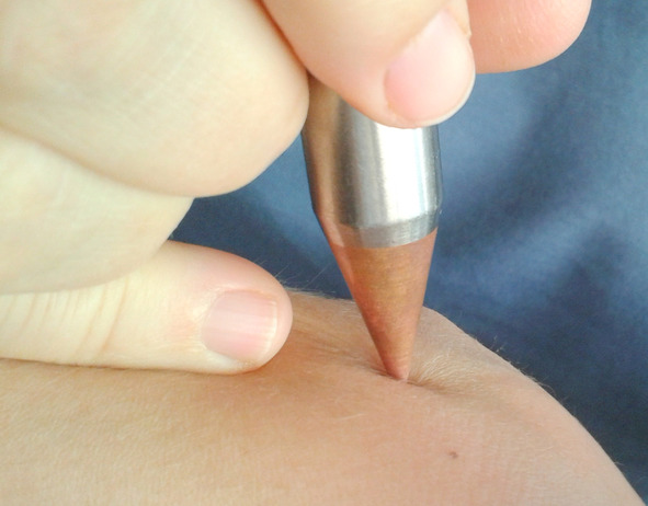 – Гострий наконечник в комбінації з фіксованою вагою пристрою забезпечують механічний вплив на тканини тіла людини, що легко дозується.