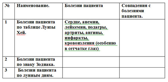 13.2.8. Также необходимо просмотреть причины возникновения его болезни по таблице Луизы Хей (здесь ее нет, не смог найти коммерческую лицензию), а также выяснить чем он болел на протяжение всех 9 лет.