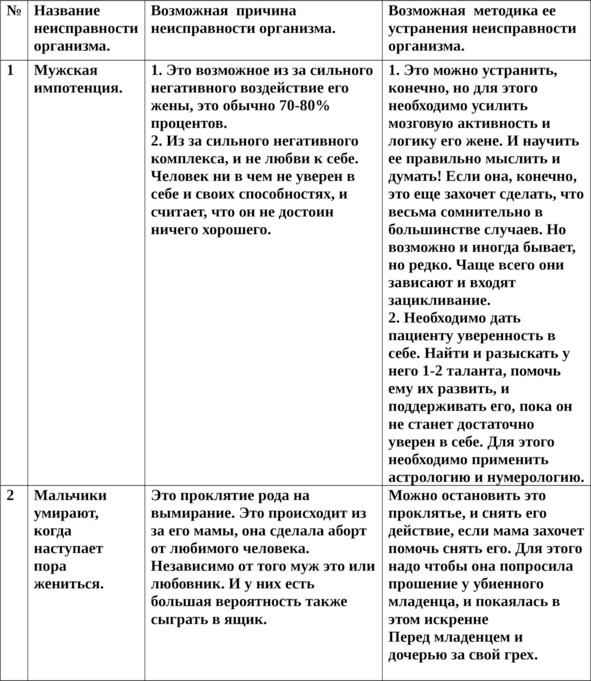 13.2.5. Пациенту необязательно верить целителю, самое главное, чтобы он хотел вылечиться и быть здоровым. А вылечиться не хотят 90% пациентов, потому что им удобнее быть больными. Это не абсурд, а реальность. И второе он должен не мешать целителю его лечить. Если дверь закрыта, то войти нельзя!