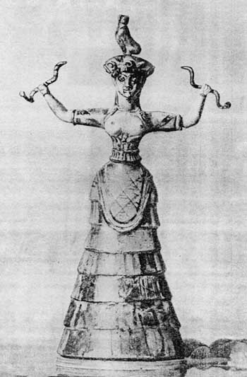 Великая Богиня со змеями. Древнекритская статуэтка из слоновой кости.