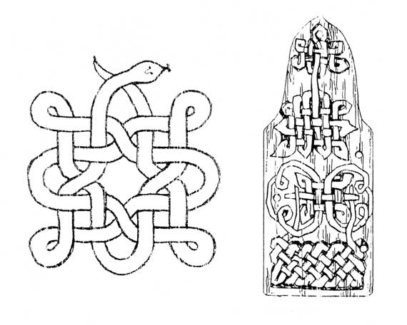 Индуистская змеевидная янтра (слева) и древнерусская «плетенка» на обороте дощечки для письма.