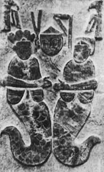 Рельефное изображение змееногих Фу-си и Нюй-ва.