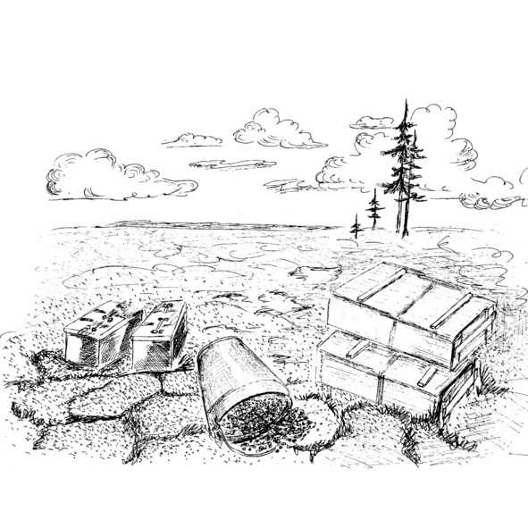 Погода потихоньку разведривалась: солнышко прогрело болото, даже вялая мошкá выбралась из торфа. К часу дня они расположились на точке и начали выбуривать пробы. Процедура заняла около двух часов. Закончив, они сложили пробы в рюкзак, перекусили хлебом с салом, покурили и пошлёпали обратно.