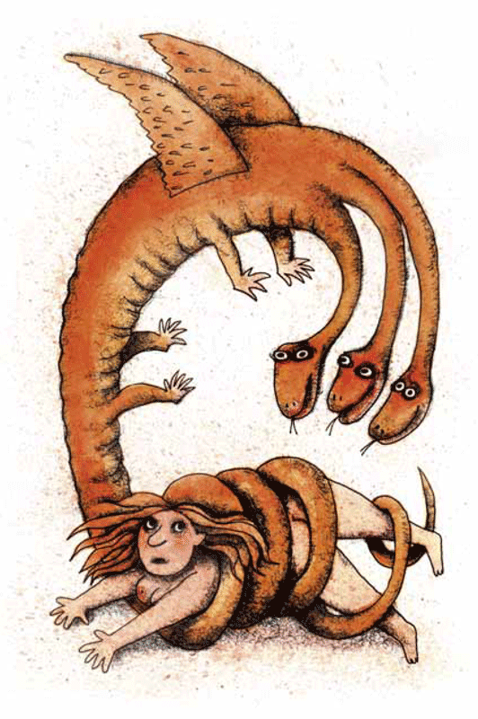 Однажды прискачет богатырь, Змея Горыныча убьет, дань красивыми девушками будет отменена, но богатырь, разумеется, велит крестьянам платить ему, богатырю другую какую-нибудь дань, вероятно не столь кровавую, как требовал того Змей Горыныч.