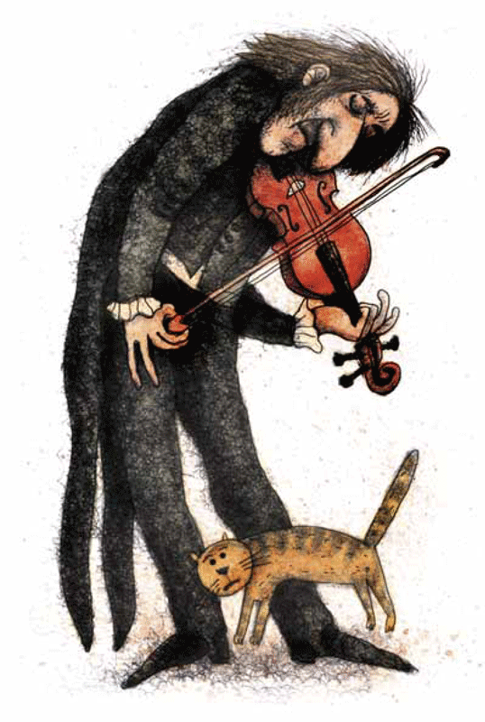 Итак, шагает себе скрипач по дороге, идет из деревни в деревню играть на свадьбах, да вдруг проваливается в ад. Со скрипачами такое случается в русских сказках, скрипачи, старухи и кошки легко как-то перемещаются между мирами. И там, в аду скрипач встречает богача, который зарыл два сундука у ворот своего дома, да так и умер, никому не рассказав о кладе. И это катастрофа: если бы деньги достались наследникам, участь богача на том свете была бы не столь ужасна, но тех, кто удерживает свое богатство и после смерти, нéнаши пытают люто.