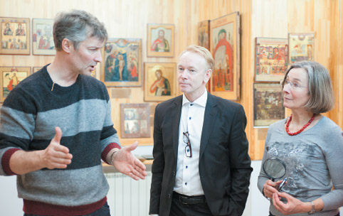 В 1999 г. Евгений Ройзман создал первый (и до сих пор единственный) частный музей иконы в России. На фотографии – Ройзман показывает музей «Невьянская икона» шведскому послу Веронике Бард Брингеус (2014 г.)