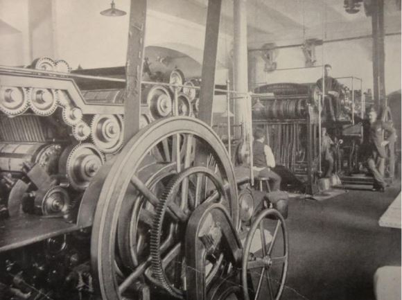 [Закрыть]. В печатном отделении к этому моменту работало множество различных машин, приводимых в движение индивидуальными электрическими двигателями мощностью от 0,5 до 10 л. с., рис. 5. Их число постоянно увеличивалось. Например, к этому моменту здесь работали 65 машин разного назначения.