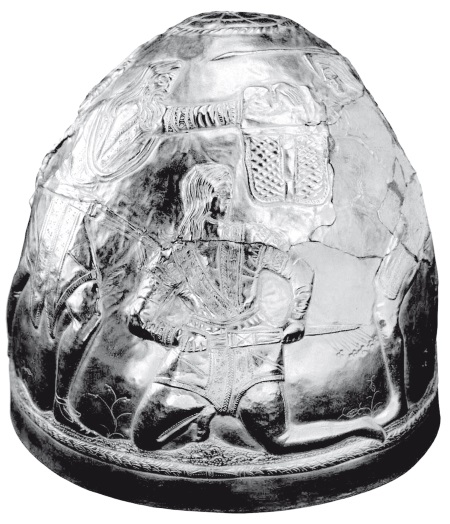 Шлем с изображением батальной сцены.