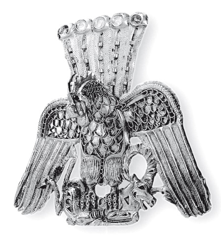 Эгрет в виде грифона, держащего в когтях горного козла. Золото. Государственный Эрмитаж, Санкт-Петербург. Вероятно, украшал головной убор знатного воина. Найдено в междуречье Иртыша и Оби