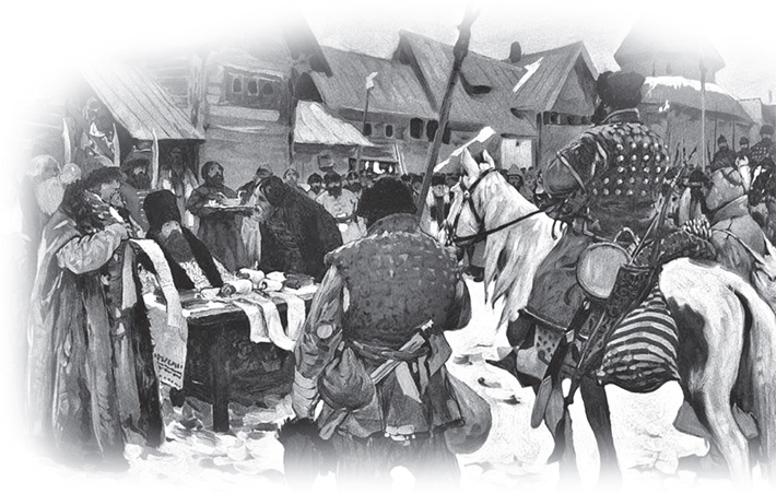 С этой армией Густав Адольф начал войну против Польши. Отобрал у неё Эстонию и северную часть Латвии. Филарет оценил, как его войска побеждали поляков. Решил – и России нужны такие же. С 1630 года в нашей стране начали организовывать «полки нового строя» или «иноземного строя». Закупили в Швеции 10 тысяч новейших мушкетов и 5 тысяч шпаг. За границей наняли несколько тысяч офицеров и солдат: быть инструкторами, научить наших бойцов иноземным приёмам. Объявили набор желающих. Сначала создали несколько солдатских полков, потом первый рейтарский – тяжёлая кавалерия, первый драгунский. В этих полках в России появились и воинские звания: полковник, подполковник, майор, капитан (в кавалерии ротмистр), поручик, прапорщик, сержант, капрал. В солдаты, драгуны и рейтары записывались казаки, горожане, крестьяне. Там платили хорошее жалованье, 4 рубля в год (корова стоила 1 рубль). Почему бы не послужить?