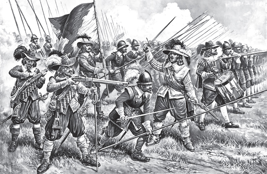 Но и Речь Посполитая была грозным врагом. На войну собирались паны с собственными отрядами, шляхтичи – это была тяжёлая рыцарская конница. В стальных доспехах, шлемах, на сильных лошадях. Они смыкались бронированным кулаком, выставляли копья. Разгонялись и прошибали строй противника, как танки. Пехоту поляки набирали из наёмников. Этим промыслом в Европе занимались жители самых бедных стран: Шотландии, Швейцарии, мелких немецких княжеств. Чтобы совсем не обнищать, отец передавал участок земли или мастерскую старшему сыну, а остальные уходили в солдаты. Нанимались к любому, кто заплатит. Могли сегодня служить одному государству, а завтра воевать против него, если другое заплатило больше. Для наёмников главное было – деньги, и они были страшно жестокими. Убивали и грабили всех подряд. Но воинами были умелыми, профессиональными. В бою надевали стальные каски и панцири. Строились в каре – прямоугольником. Часть солдат вооружалась длинными пиками, их выставляли вперёд, защищая строй от атак конницы. Другие были с мушкетами. Первые шеренги стреляют, потом отходят назад и перезаряжают. Для рукопашной носили шпаги. Не такие, как в кино, где ими изящно фехтуют. Шпага была длинным и узким мечом – попасть остриём в щель между доспехами.