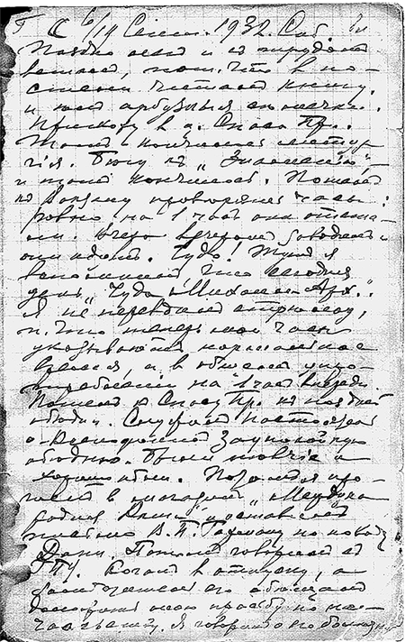 Он панически боялся чахотки, и этот страх можно объяснить. От туберкулеза умерла мать Даниила Ивановича, от этой же болезни совсем недавно скончался один из его друзей – юный, полный сил Владимиров. Страхи развеял опытный специалист, Иосиф Борисович Шейндельс, к которому Хармса направили на обследование в Курске. Туберкулез не подтвердился, а врач произвел на Хармса чрезвычайно благоприятное впечатление. Видимо, именно к нему обращено письмо, написанное уже по возвращении в Ленинград: